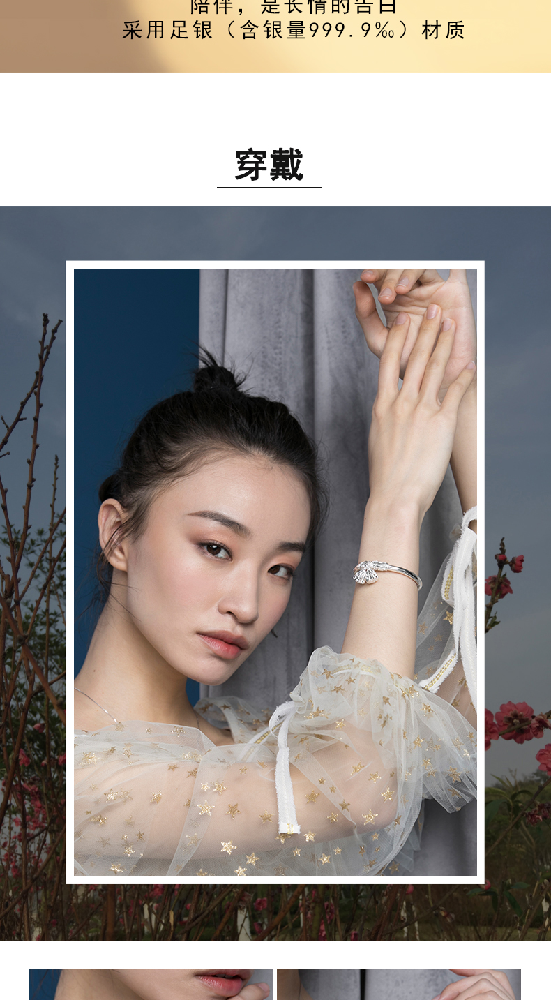 繁花似錦銀手鐲實心足銀2023新款銀鐲子女純銀9999送女友生日禮物