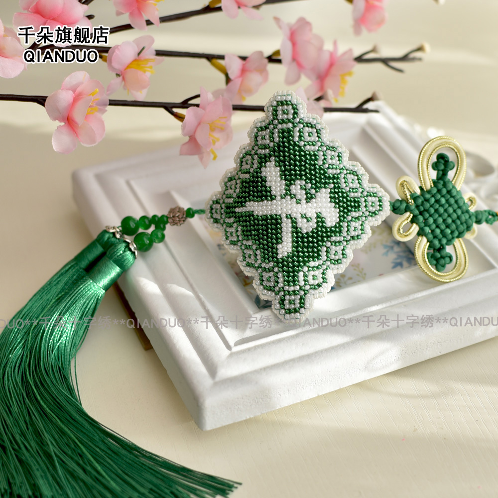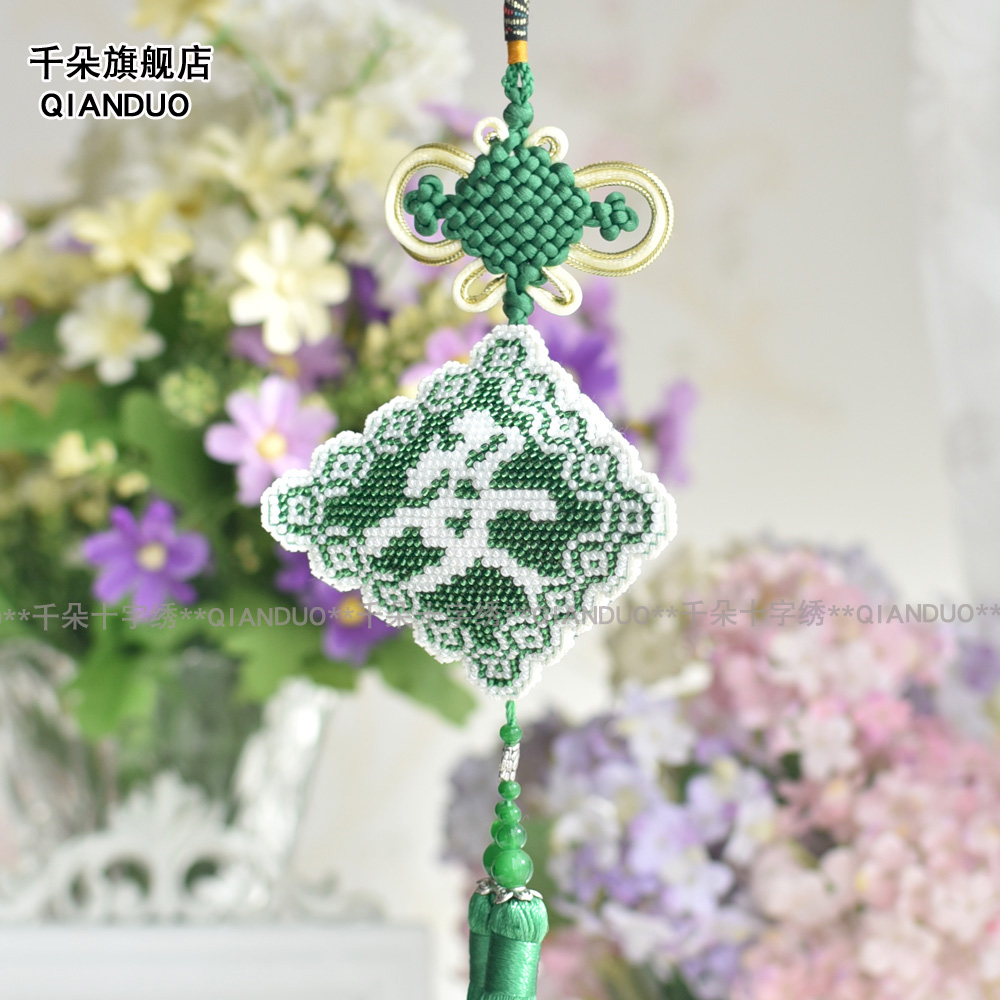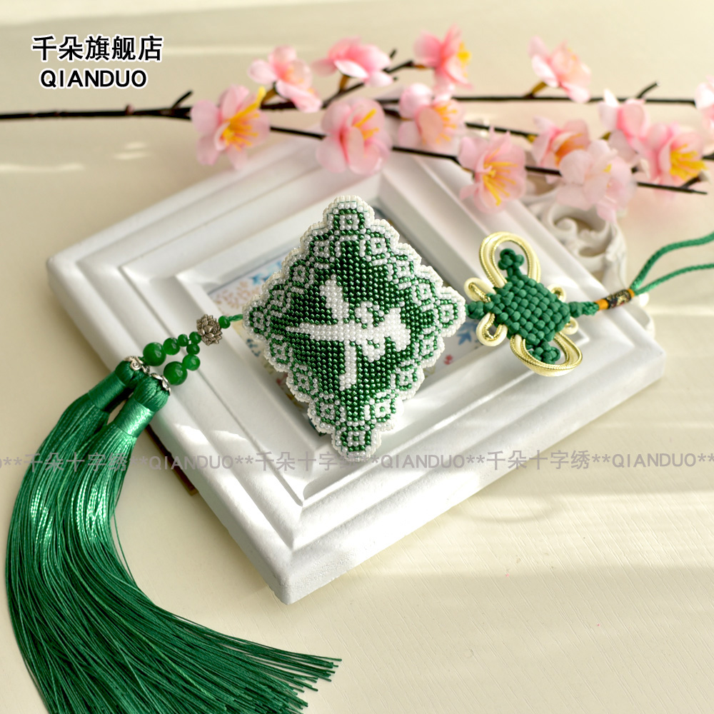 新款十字繡珠繡材料包綠色三面平安福汽車車飾車掛簡單手工小掛飾