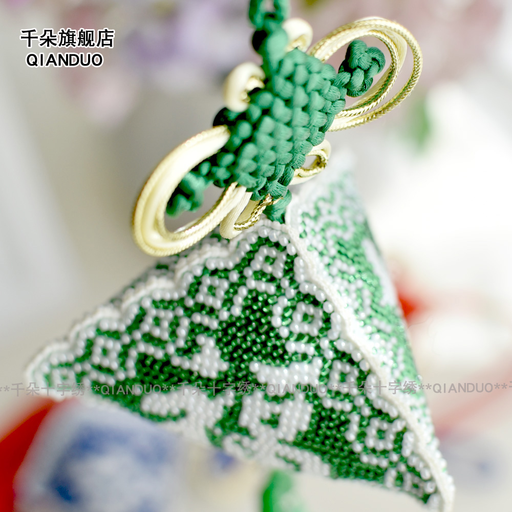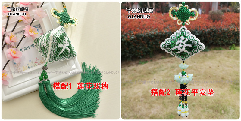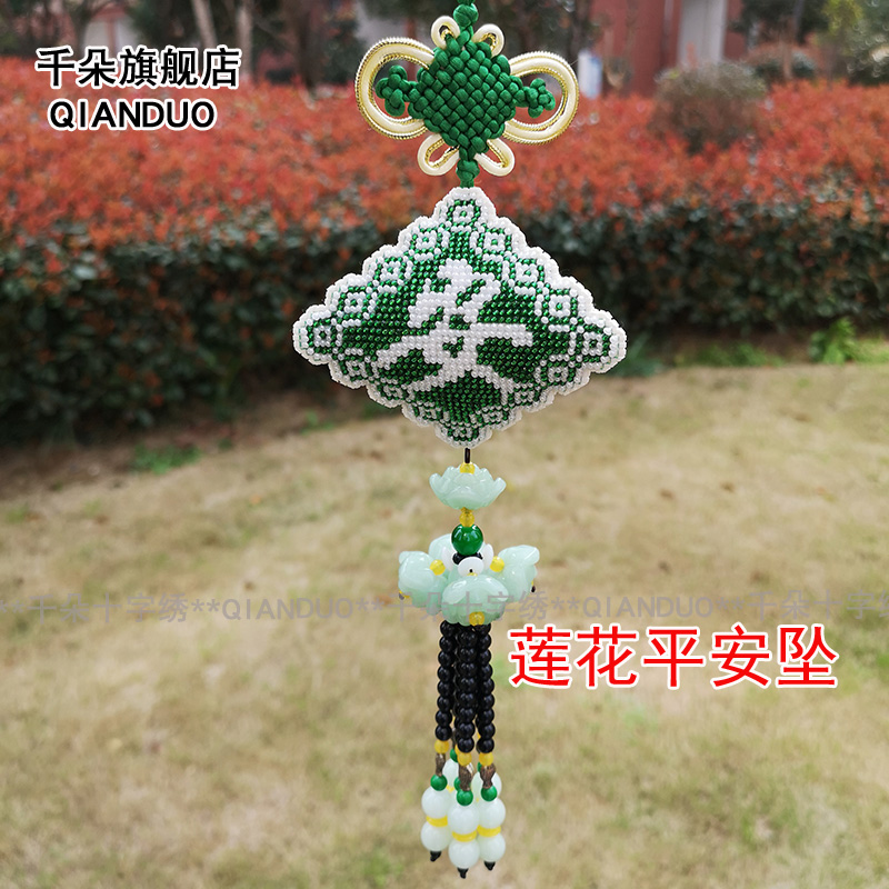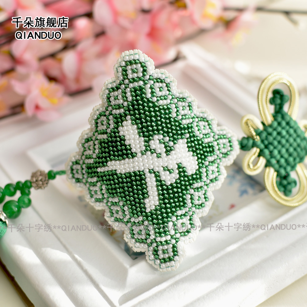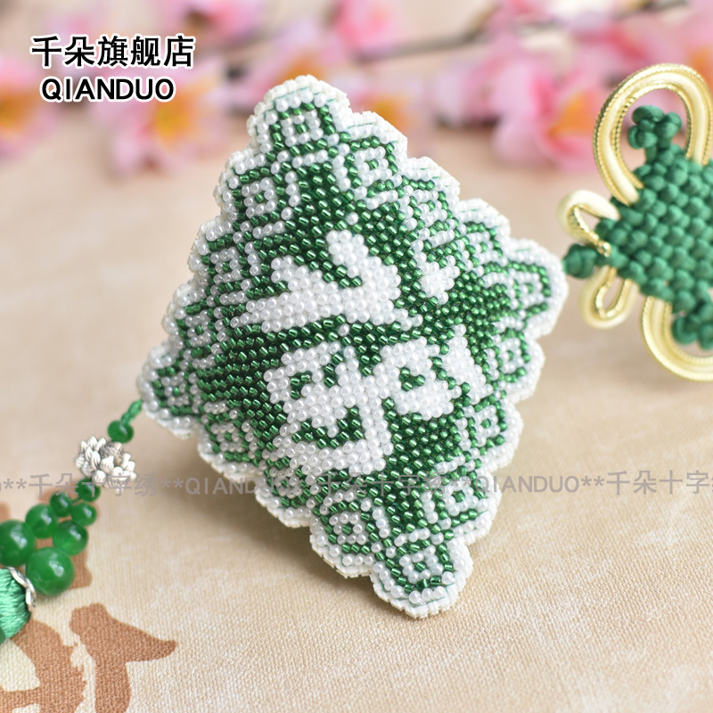 新款十字繡珠繡材料包綠色三面平安福汽車車飾車掛簡單手工小掛飾