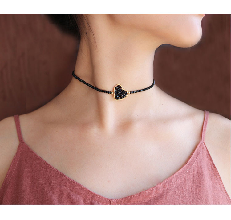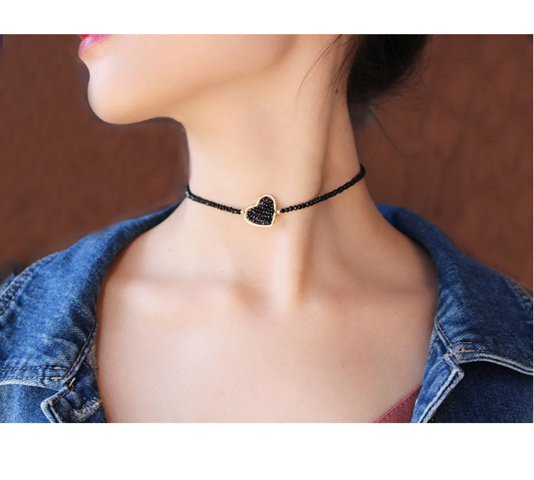 簡約氣質黑尖晶愛心項鏈原創小眾設計短款頸鏈頸帶少女心choker女