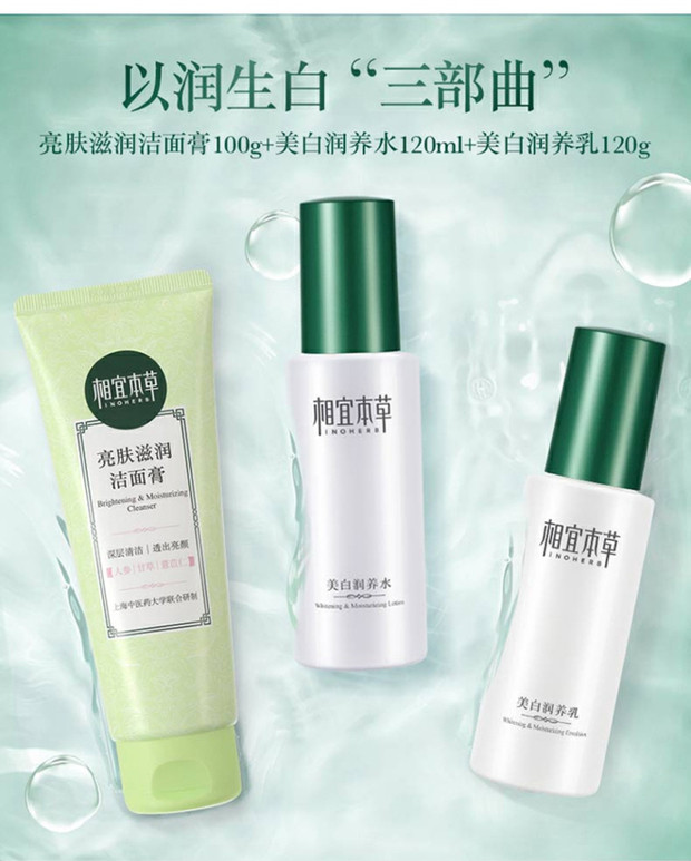 正品相宜本草水乳套裝女美白淡斑爽膚水補水保濕乳液提亮膚色潤白