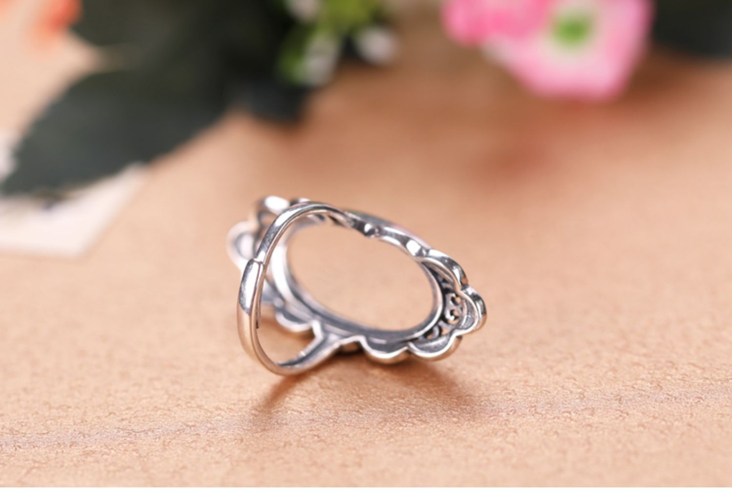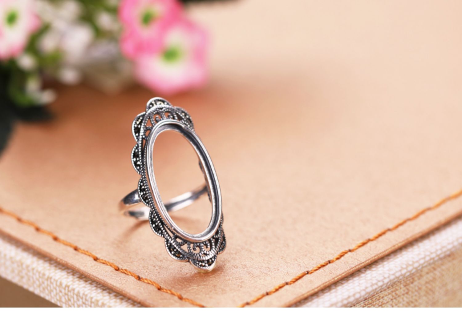 S925純銀復古戒指空托女戒托鑲嵌綠松石蜜蠟琥珀活口戒指托 14*24