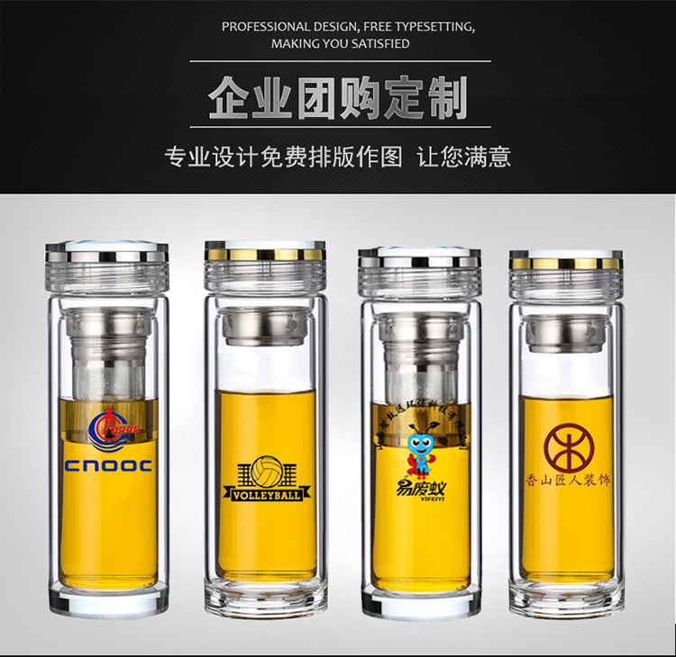 雙層玻璃杯男女泡茶杯耐熱水杯子加厚便攜水晶杯定制刻字印字LOGO