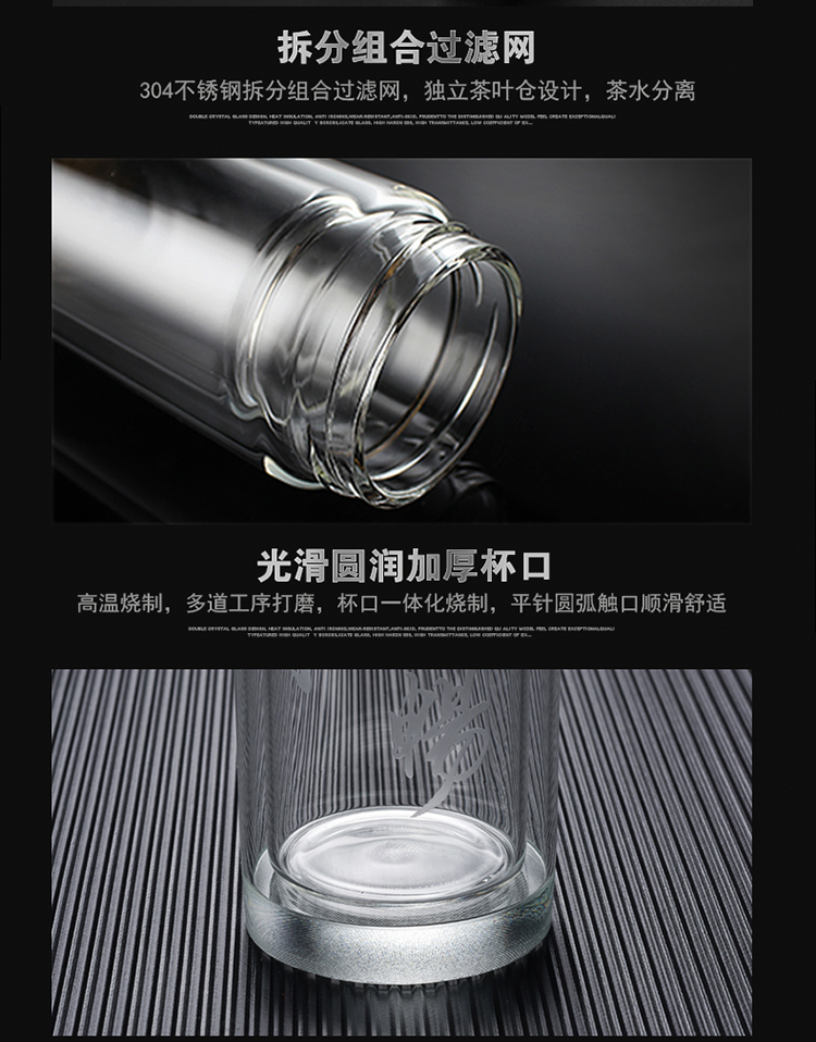 水晶雙層茶水分離透明高檔玻璃杯