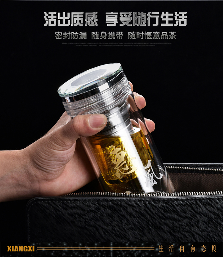雙層玻璃杯男生高檔茶水分離男士