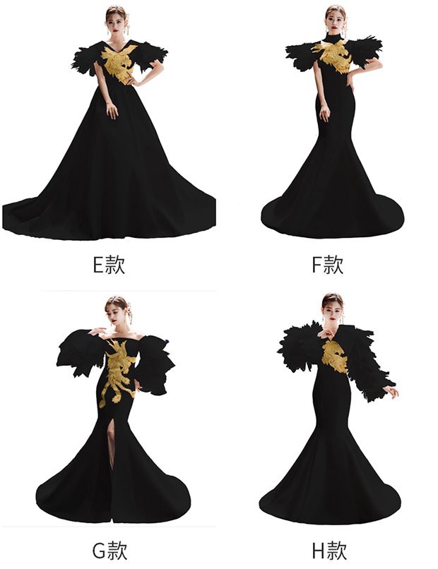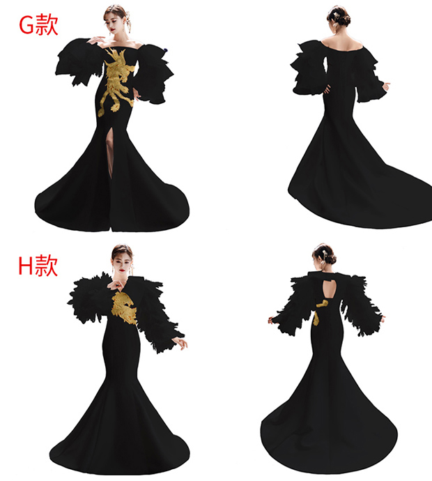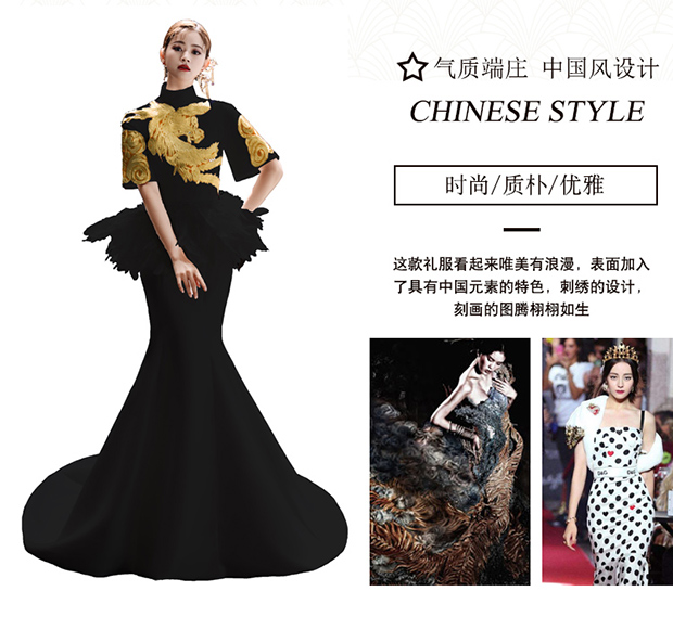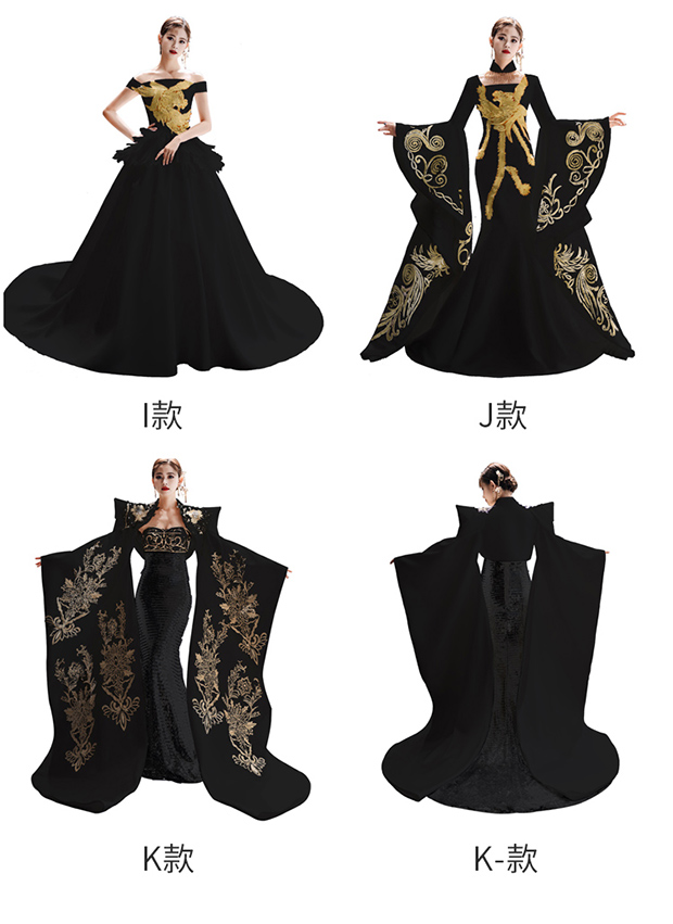 中國風黑色主持人禮服女氣質端莊大氣長款模特走秀舞臺演出旗袍春