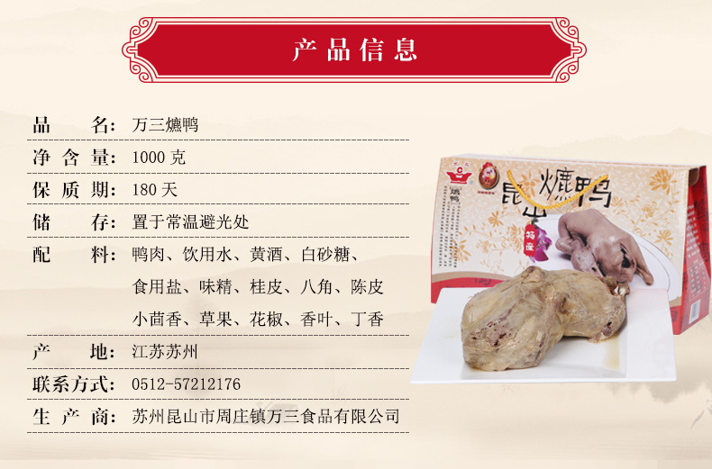 富財神萬三蘇州特色美食周莊特產爊鴨1000g鹵味熟食小吃醬鴨禮盒