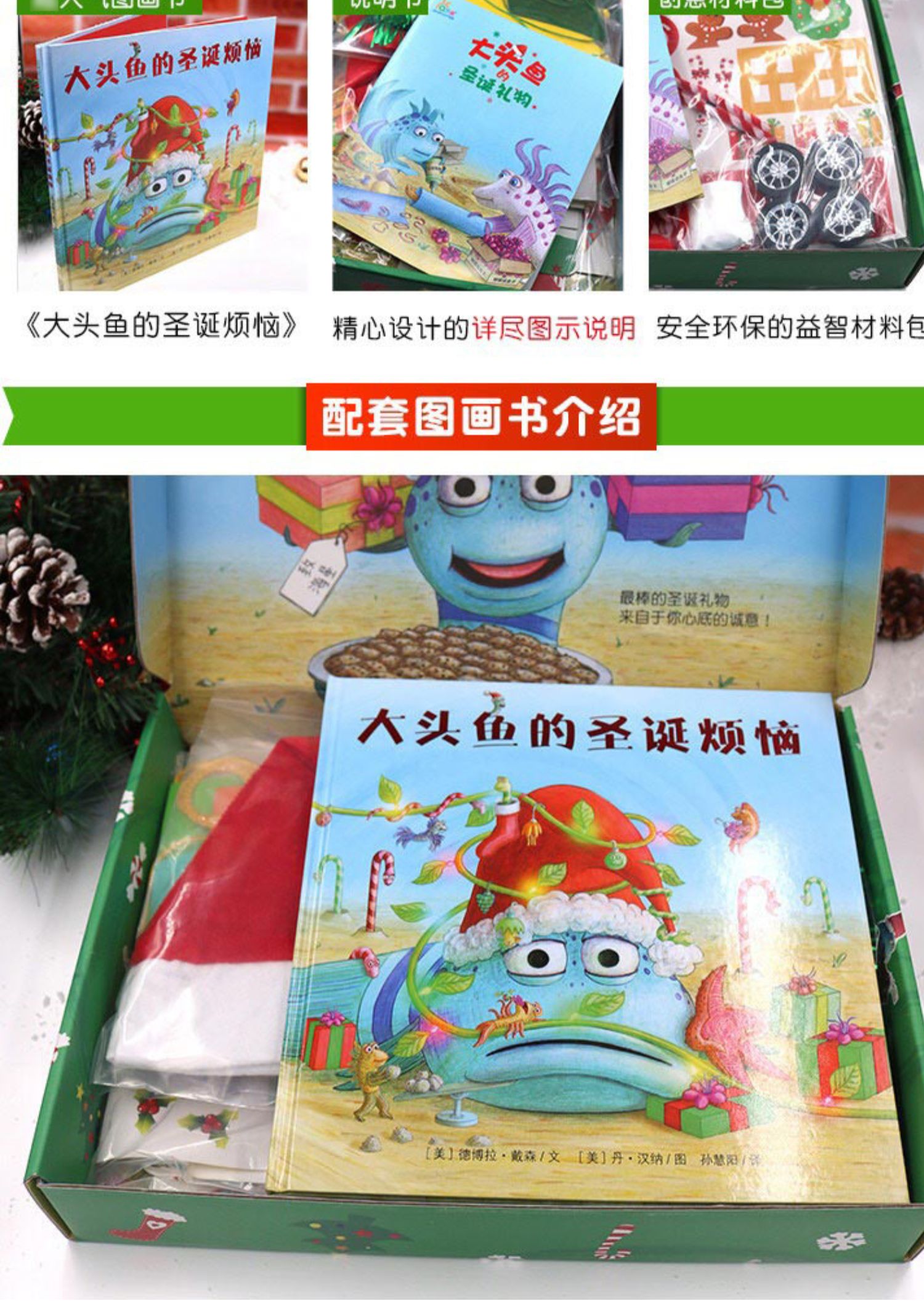 大頭魚的圣誕禮盒 大頭魚的圣誕煩惱+7個圣誕手工材料包 麥克米倫世紀繪本寶寶故事書幼兒手工動手diy游戲書送禮4-5-6-7周歲
