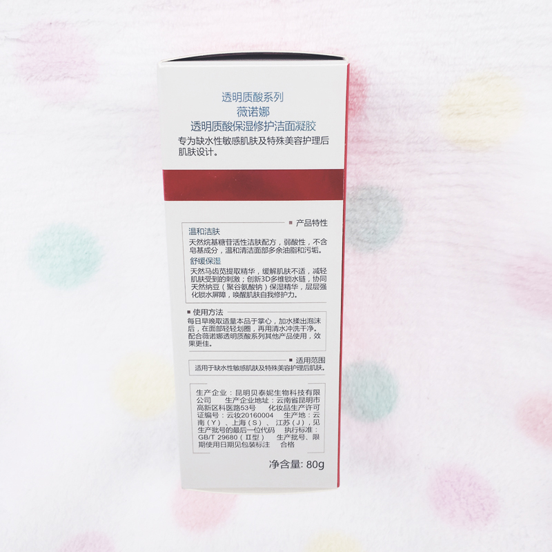 特價臨期薇諾娜透明質酸保濕修護潔面凝膠80g 洗面奶乳24.3月到期