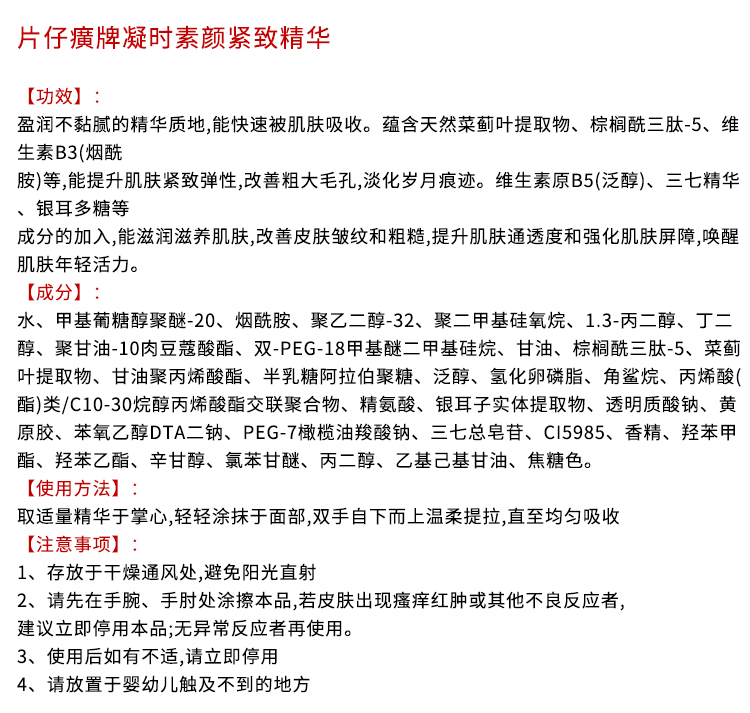 片仔癀凝時素顏緊致精華液女煙酰胺