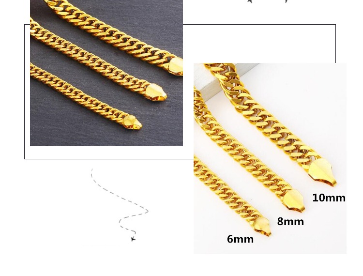 越南沙金項鏈男純金色持久不掉色馬鞭鏈泰國仿黃金老板鏈999飾品