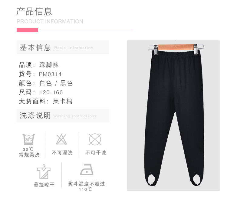 舞之戀兒童舞蹈服黑白色芭蕾拉丁腳蹬健美打底踩腳女童練功褲純棉