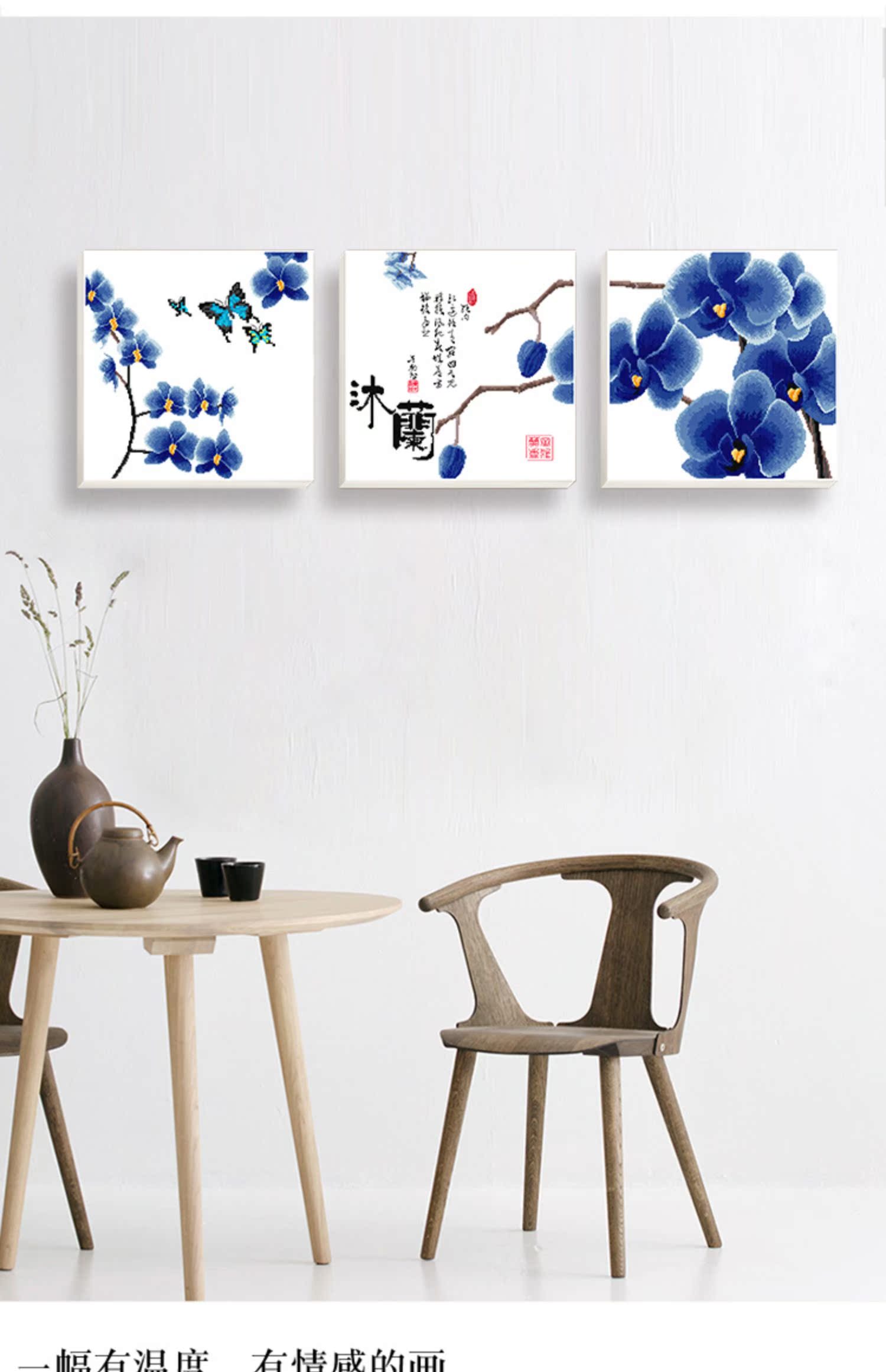 十字繡2023新款線繡簡約客廳花卉系列現代餐廳清新三聯畫簡單繡