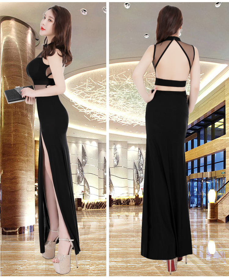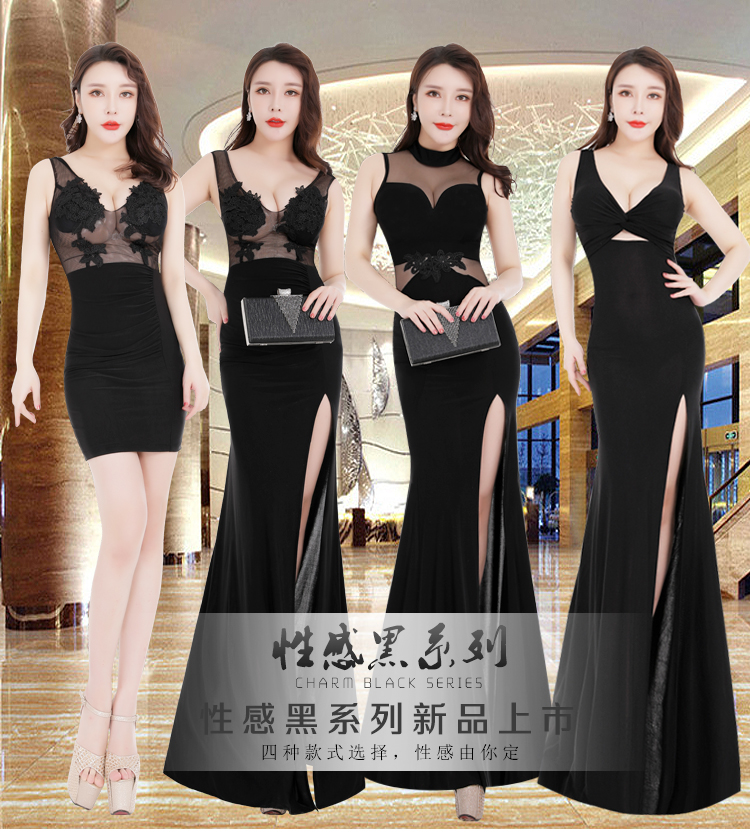 夜場性感低胸晚禮服女2023新款夜店氣質晚宴名媛禮服裙黑色連衣裙