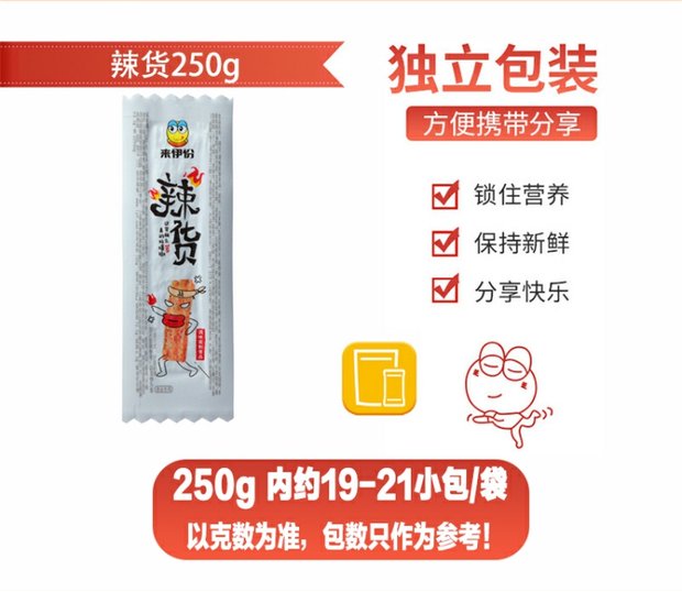 來伊份辣貨500g休閑零食辣條辣片辣皮面筋制品麻辣網紅小吃散裝