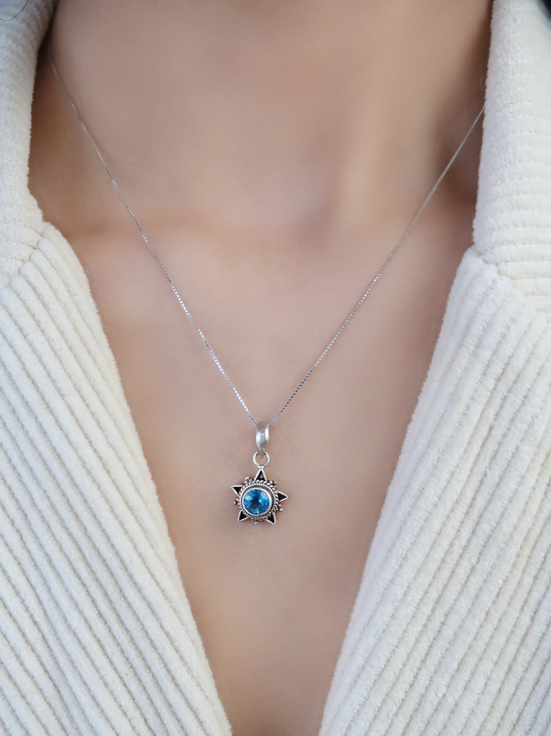 尼泊爾手工925銀飾品托帕石月光石綠松石吊墜 女項墜創意復古民族