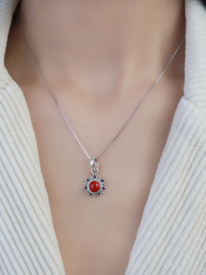 尼泊爾手工銀飾品925鑲嵌寶石項墜