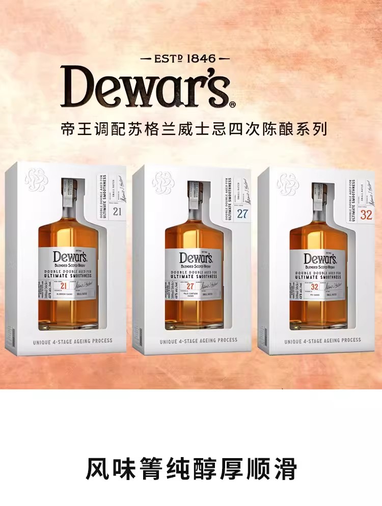 Dewar's帝王四次陳釀調配威士忌蘇格蘭四次陳釀21/27年32年