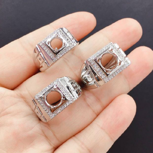 男戒空托925銀戒指空托鑲嵌圓鉆莫桑鉆6 7 8mm個性大氣時尚高級
