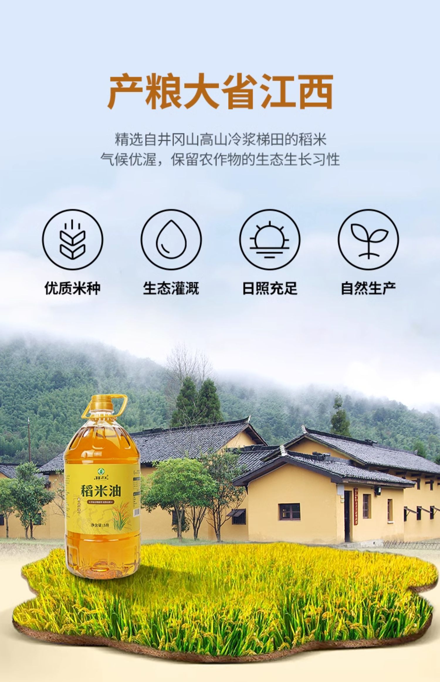 井江純稻米油5L 米糠油 含谷維素家用大桶食用油5升官方正品