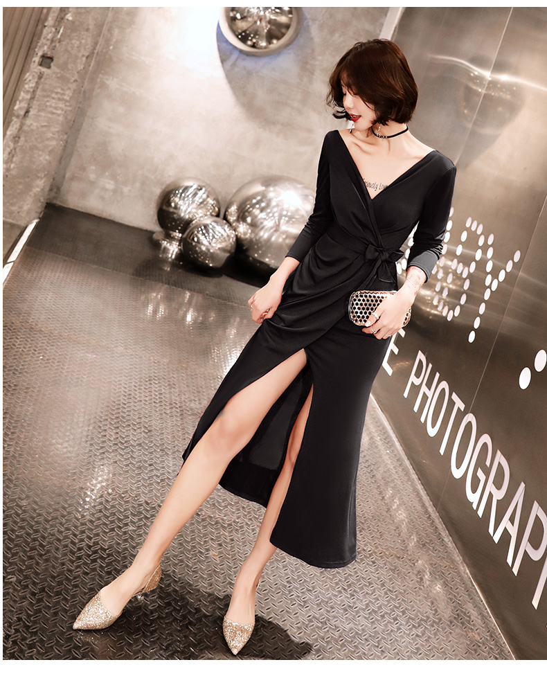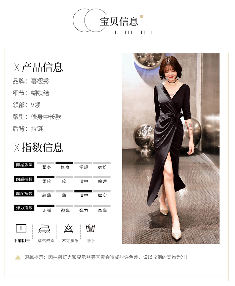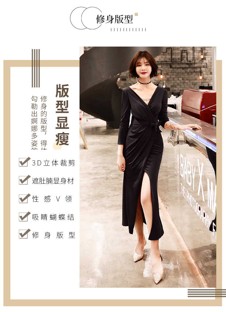 氣質晚禮服女2023新款宴會高貴名媛性感黑色中長款連衣裙簡單大方
