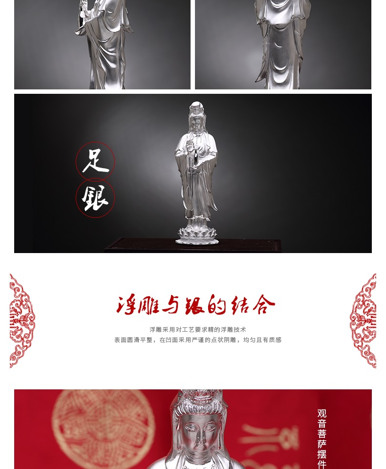 s999觀音擺件蓮花3d觀音菩薩純銀