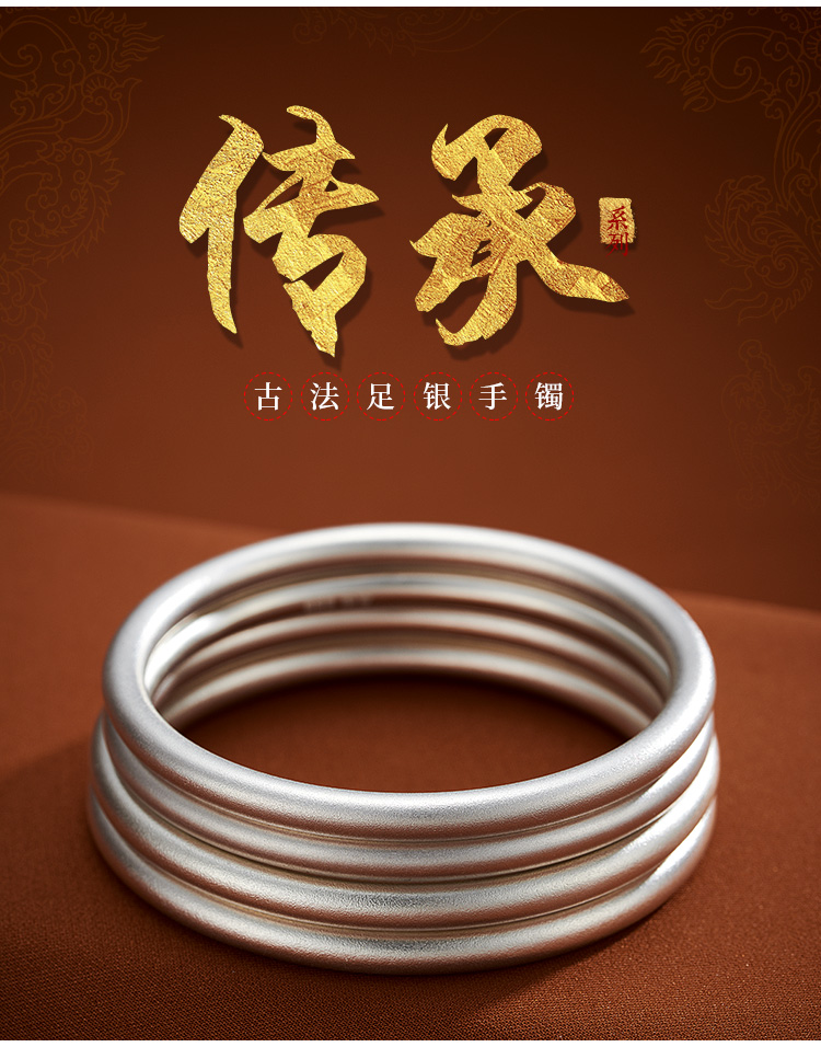 順慶銀樓S9999古法銀手鐲女年輕款純銀鐲子足銀國潮古風手飾禮物