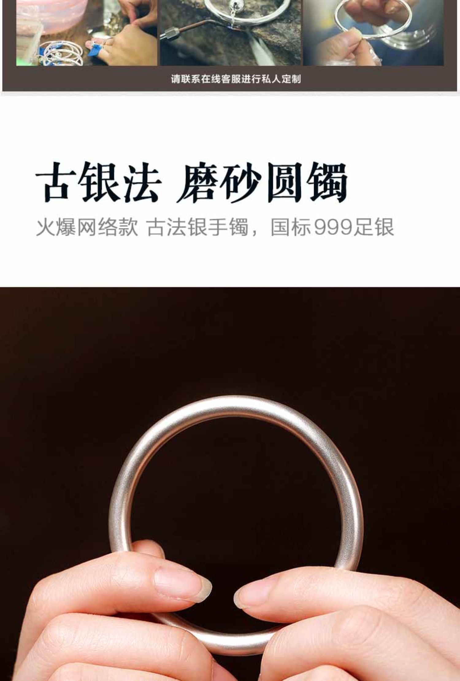 九樂999純銀古法傳承銀手鐲女足銀鐲子年輕款實心手環小眾ins風