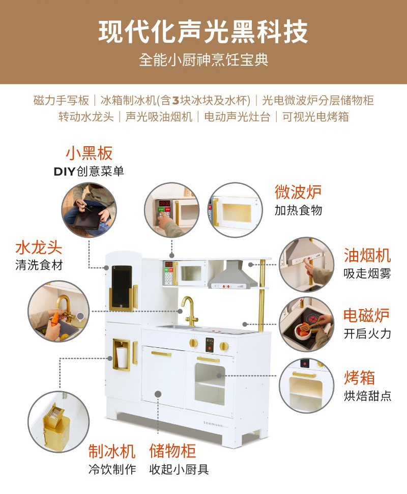 美國 Teamson迪生家聲光廚房過家家玩具木質女孩寶寶兒童廚房玩具