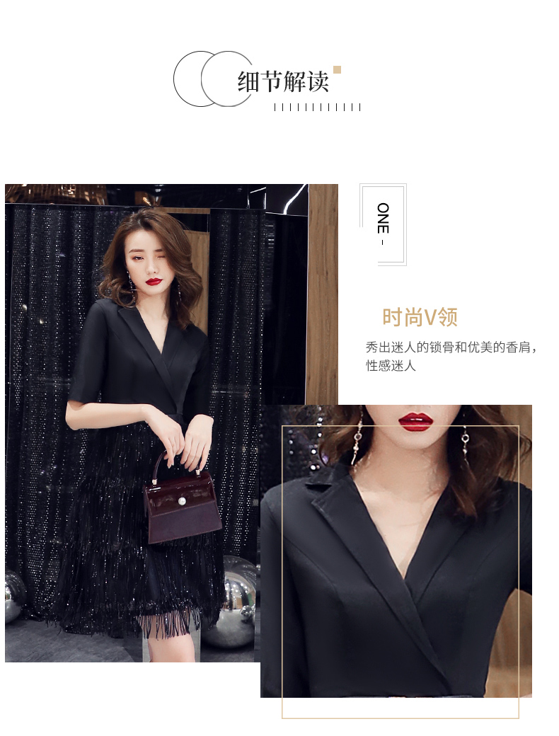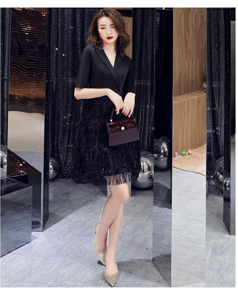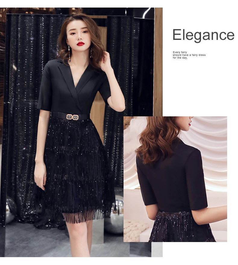 小個子晚禮服女2023新款宴會氣質黑色平時可穿高級質感亮片連衣裙