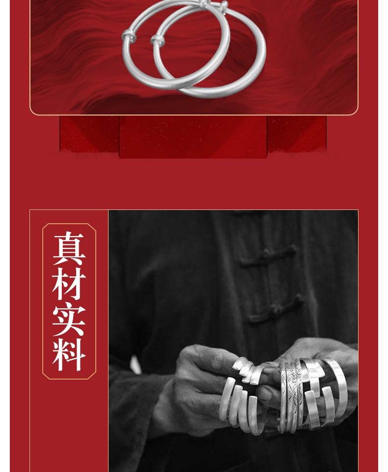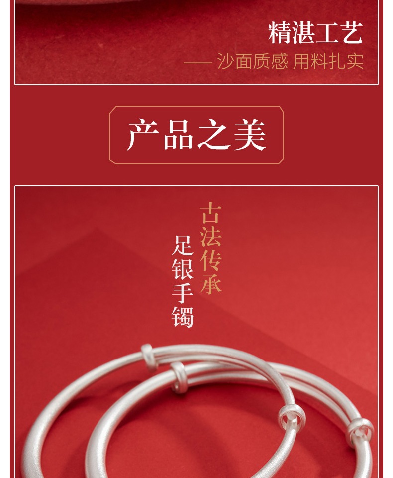 順欽銀樓S9999純銀寶寶銀手鐲女古法兒童嬰兒傳承親子款生日禮物