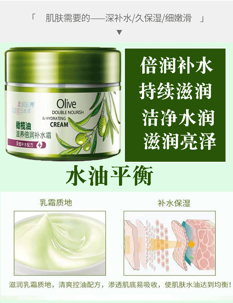 安安金純橄欖油滋養倍潤補水霜深層補水保濕面霜乳液正品專柜國貨