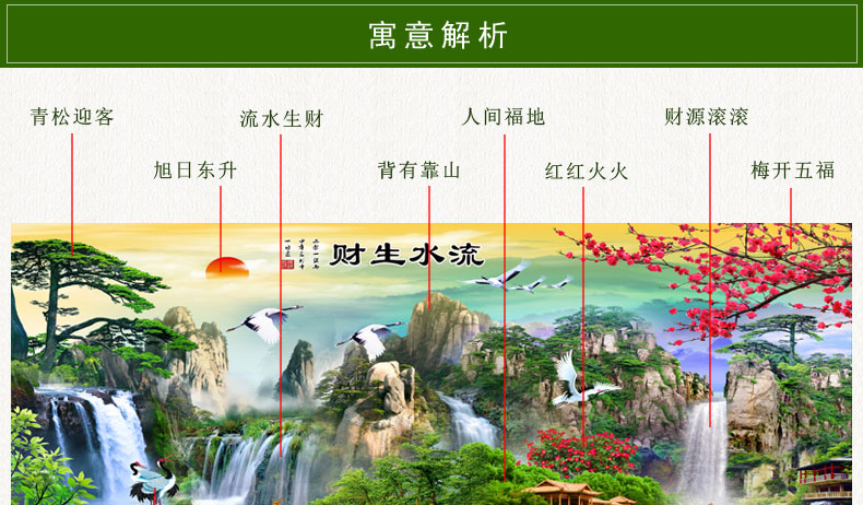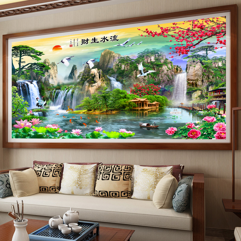 蒙娜麗莎十字繡流水生財大幅風景山水畫2023新款線繡簡約現代滿繡