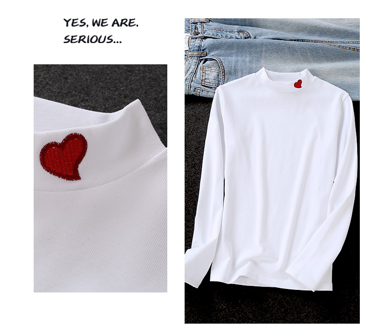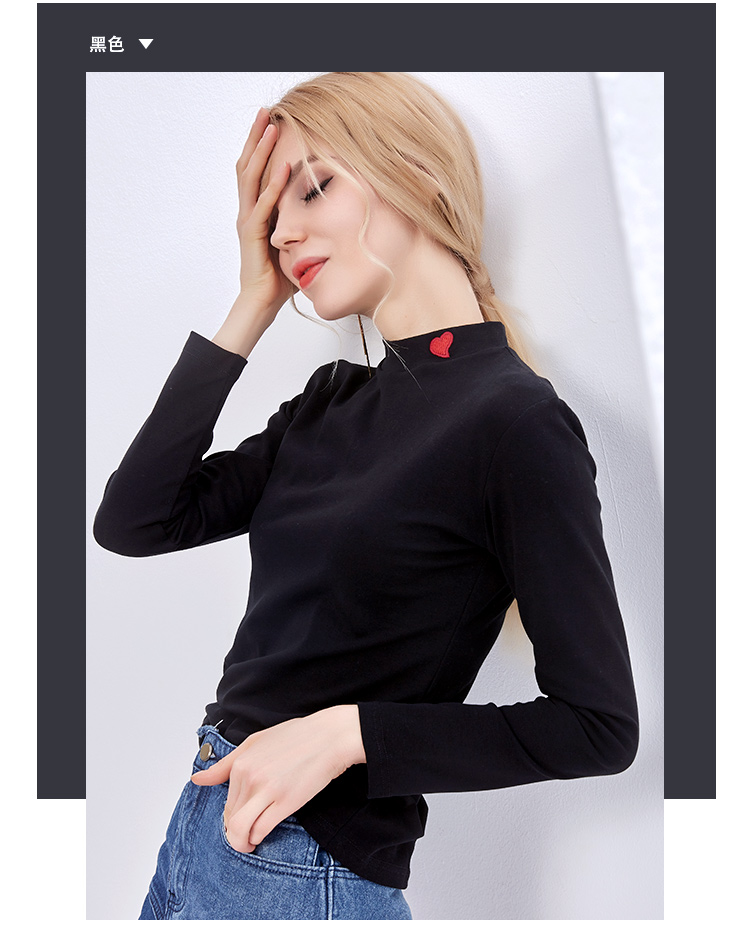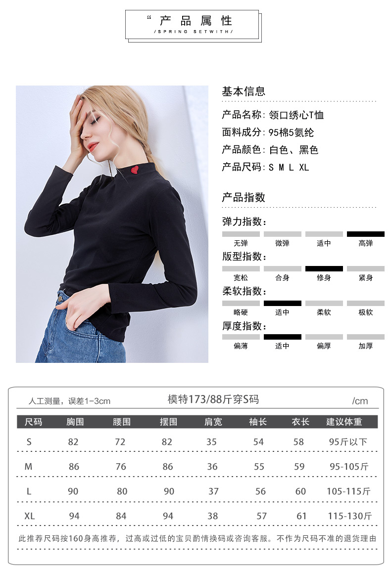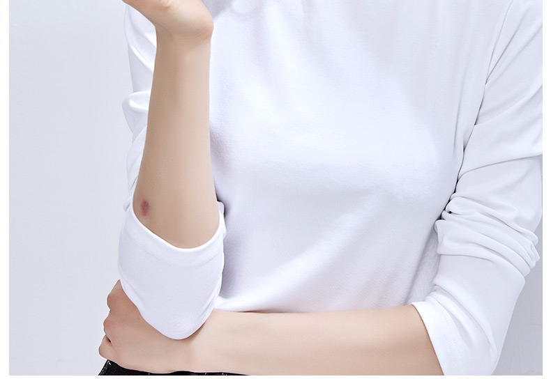 白色長袖t恤女半高領打底衫修身內搭純棉春秋冬百搭純白煙管領