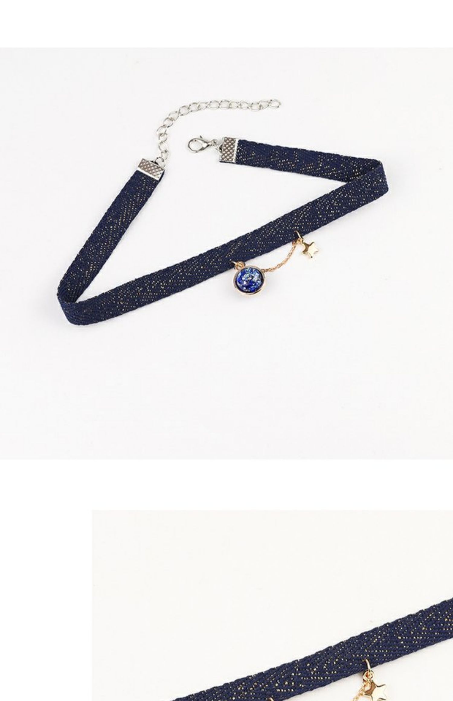 星夜原創設計藍色鎖骨鏈女頸鏈choker星球少女心短款脖子飾品頸帶