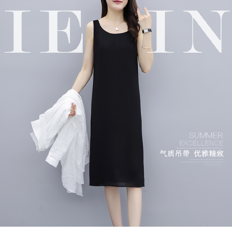 雪紡吊帶背心打底裙中長款外穿胖mm大碼寬松內搭襯裙連衣裙長裙女