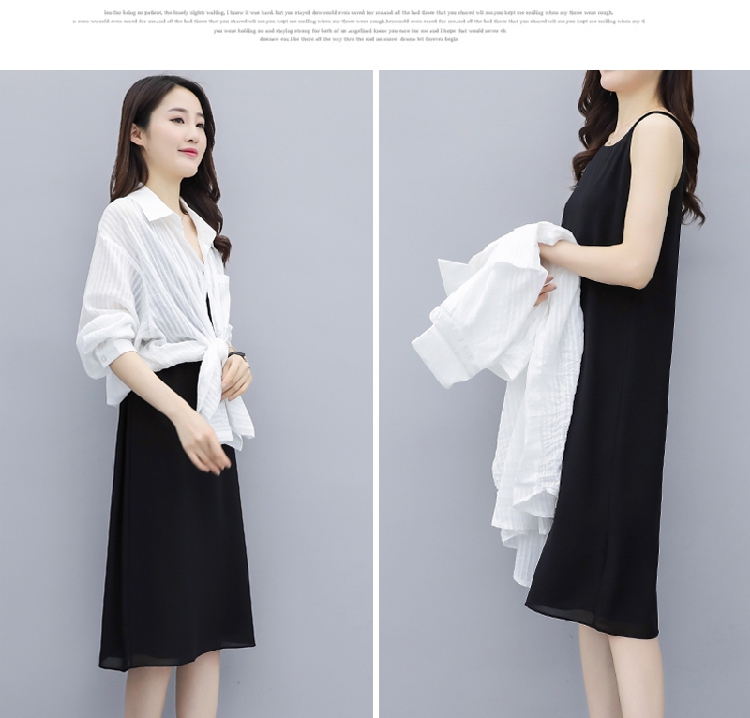 雪紡吊帶中長款春夏胖mm寬松打底裙