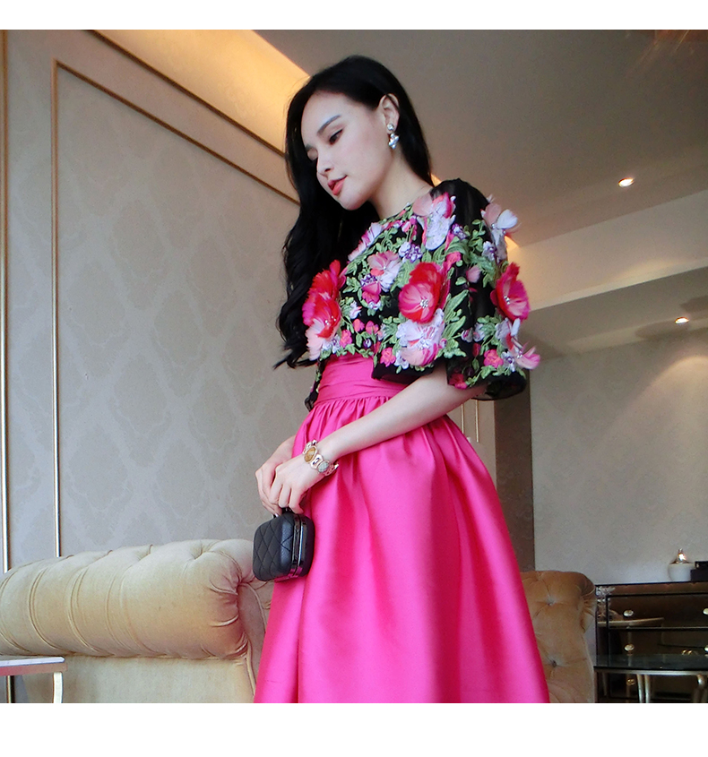LEEDY&ME新款長裙手工羽毛訂花韓版收腰大擺長禮服裙晚宴會生日