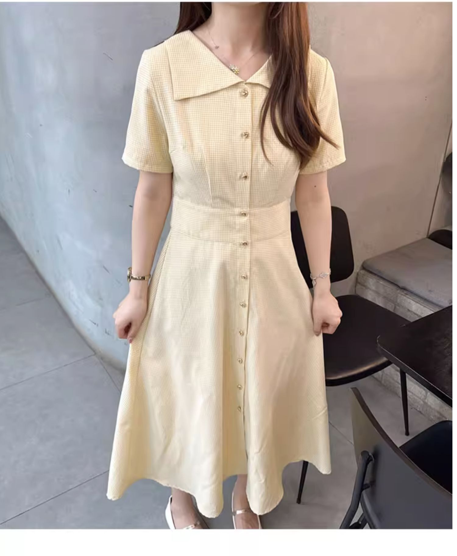 JUJU定制法式復古茶歇娃娃領襯衫連衣裙顯瘦收腰小清新裙子女夏季