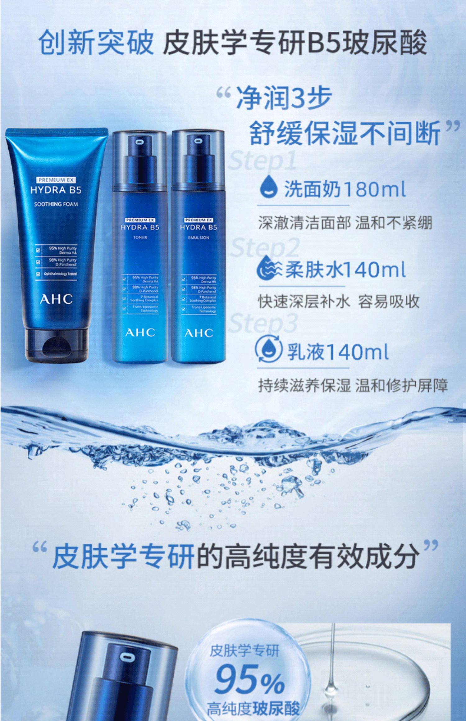ahc玻尿酸b5水乳潔套裝補水舒緩