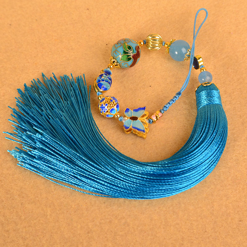 寶藍色手工古典珠串流蘇景泰藍旗袍