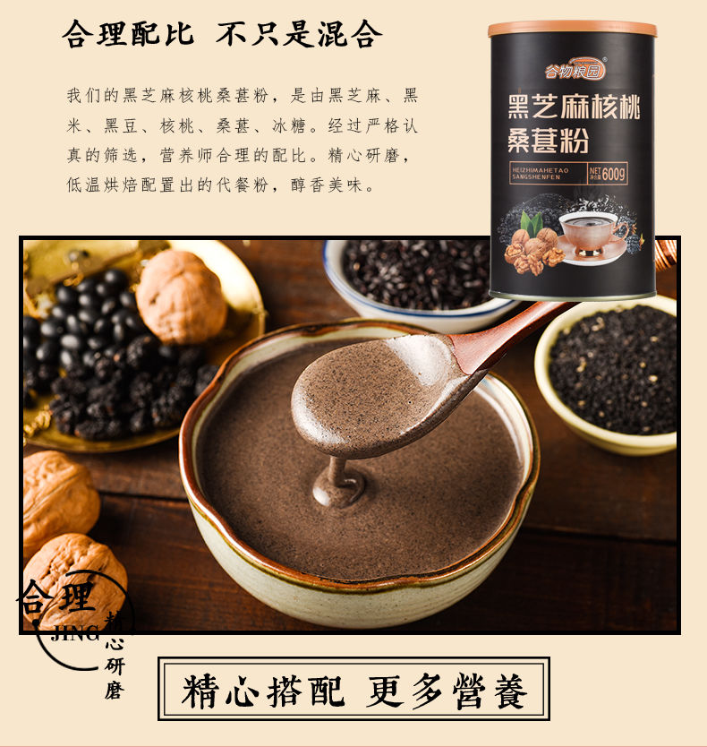 黑芝麻糊核桃黑豆桑葚粉正品官方旗艦店早餐即食粗糧沖飲沖泡食品
