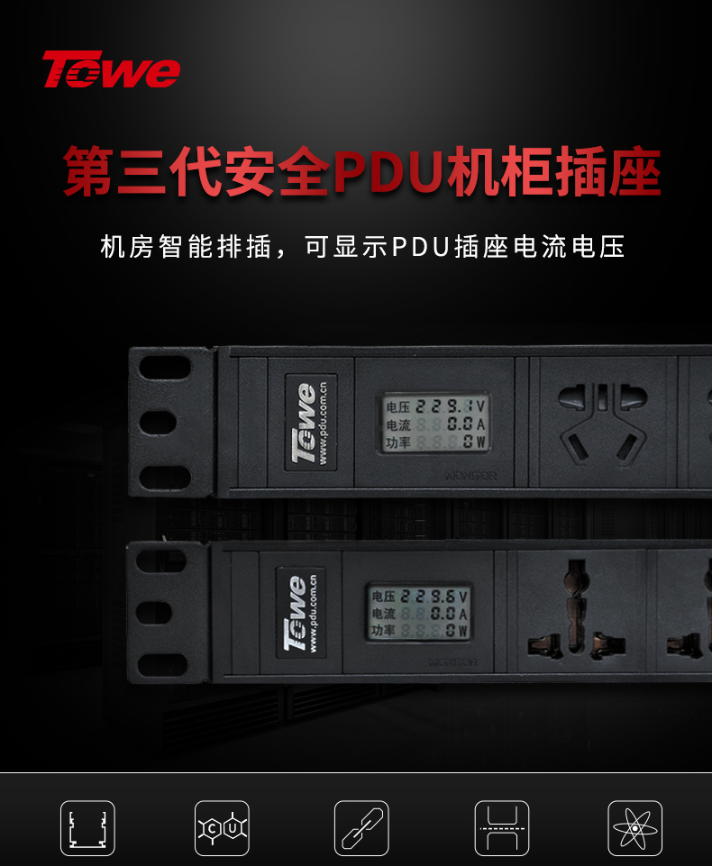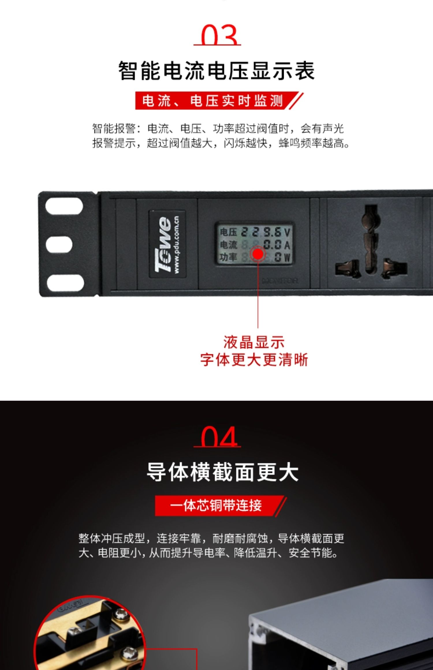 TOWE同為8位智能數顯PDU機柜插座電流電壓顯示插排定時倒計時插座