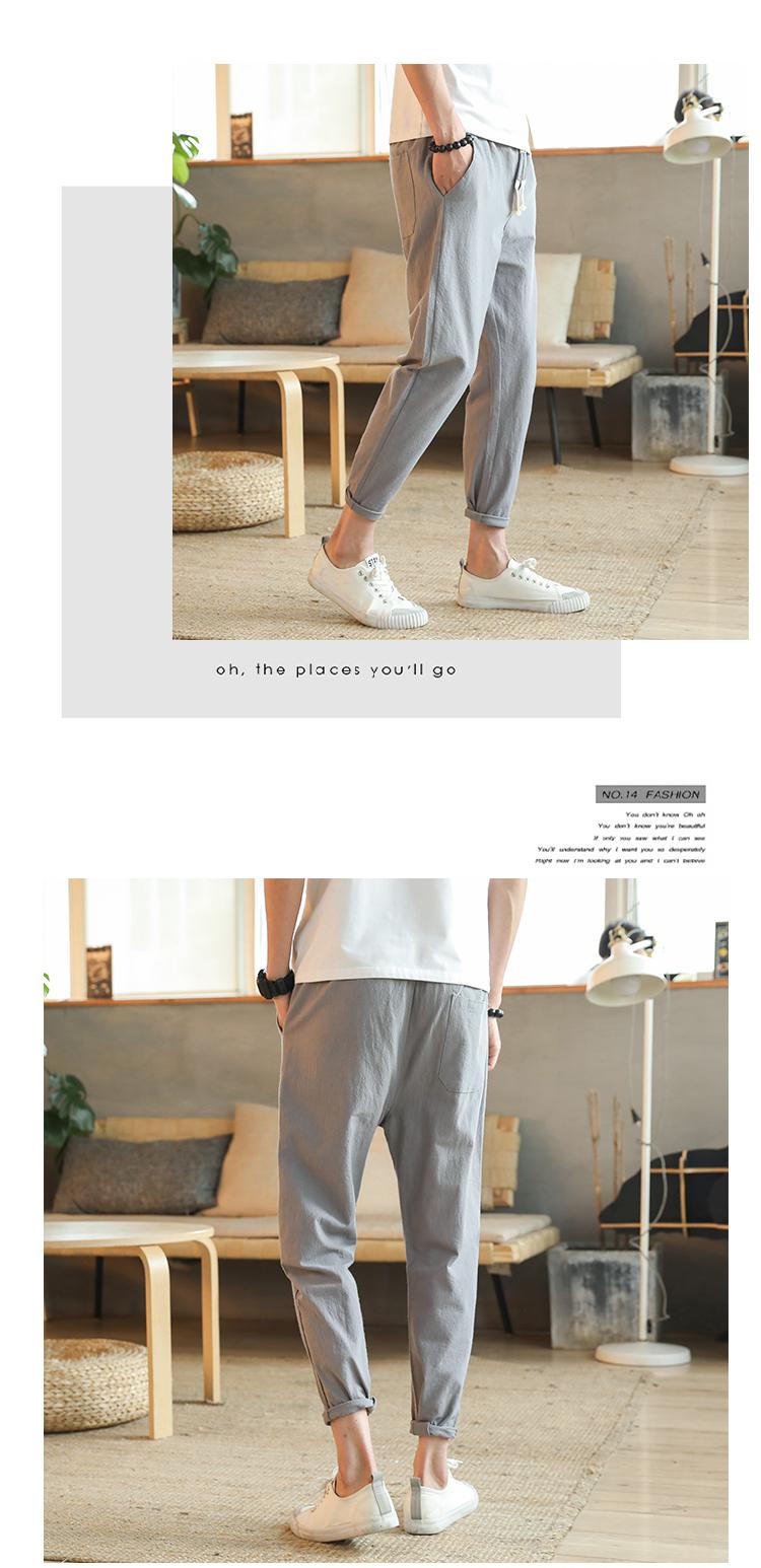 男士褲子夏季休閑韓版潮流百搭薄款七分褲九分褲束腳褲棉麻潮牌