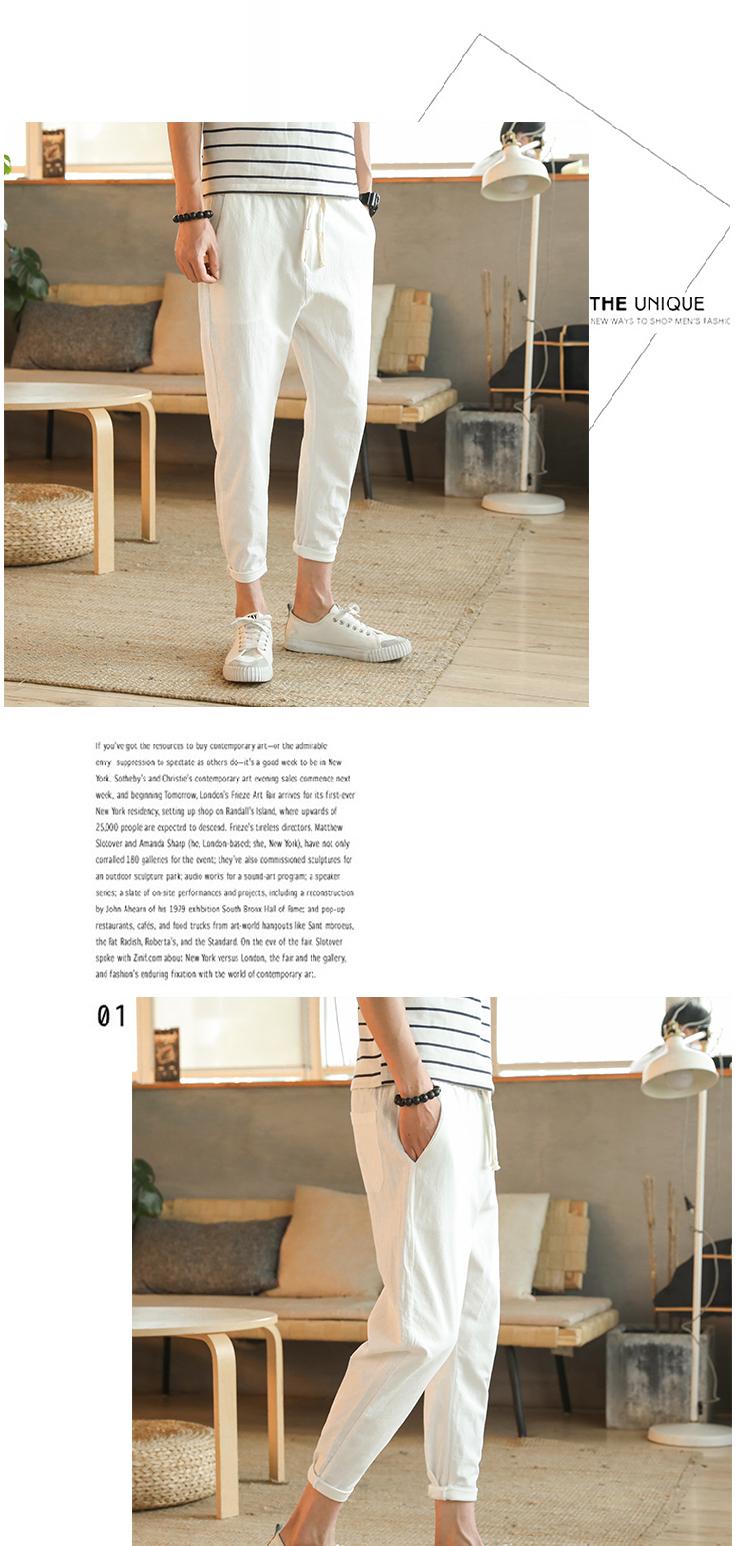 男韓版潮流棉麻夏天冰絲修身七分褲