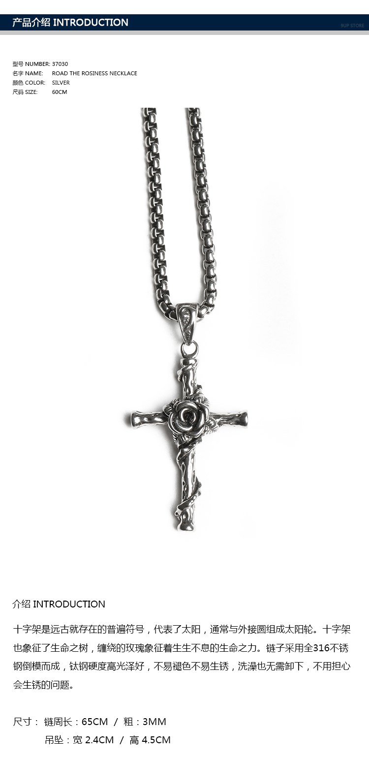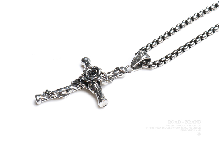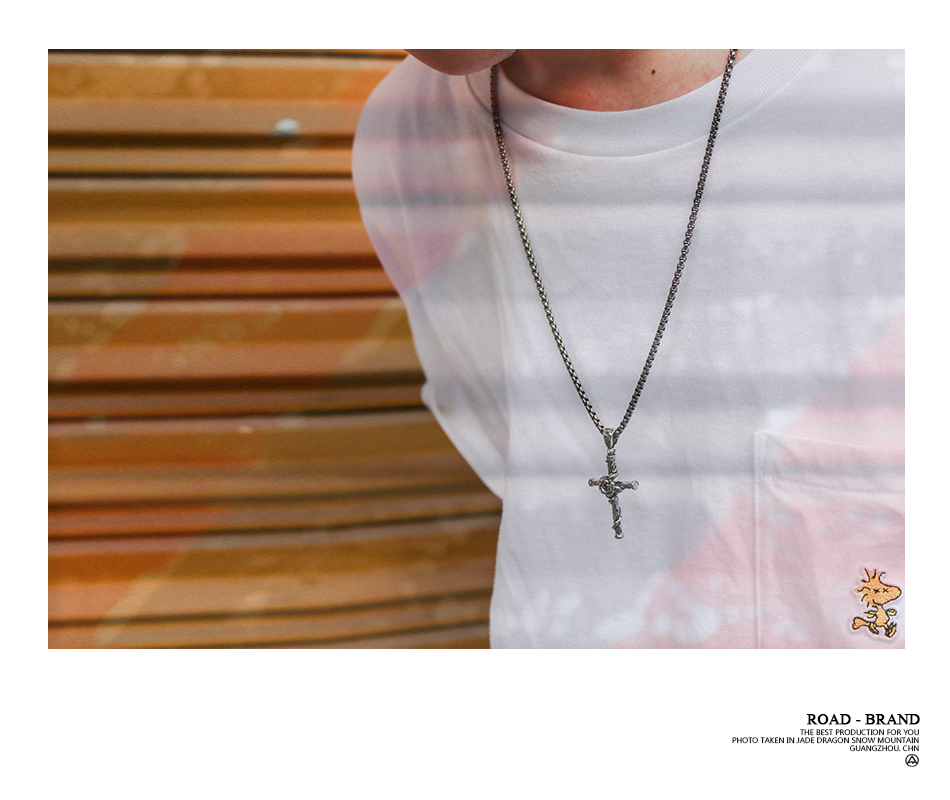 ROAD原創潮牌玫瑰十字架復古鈦鋼項鏈男女情侶潮流街頭韓情人禮物