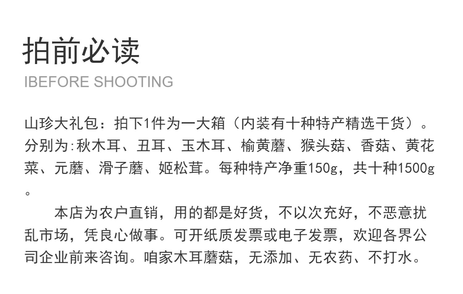 東北山珍禮盒1500g黑木耳干貨玉木耳榛蘑松茸香菇元蘑特產大禮包