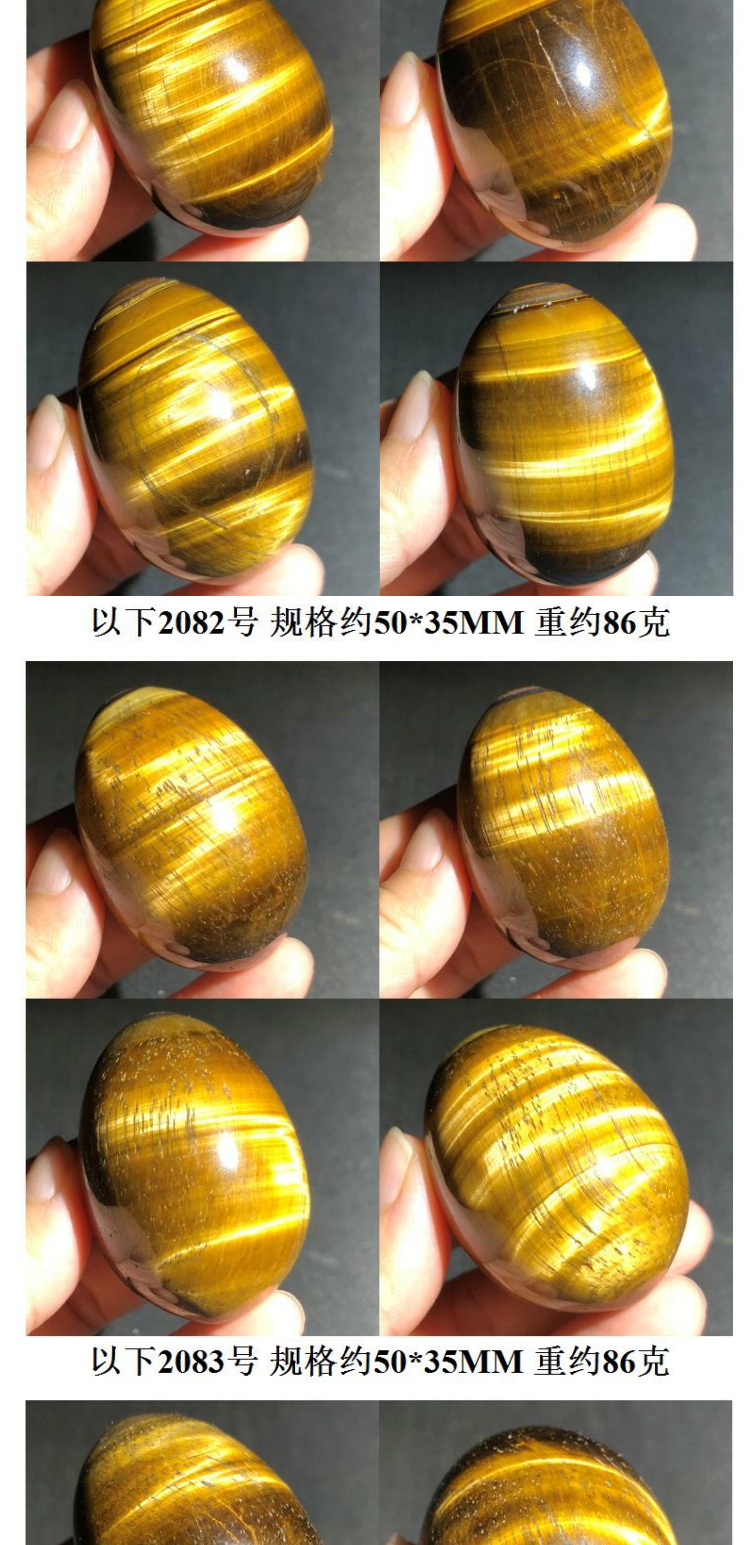 千蕊天然黃虎石雞蛋小擺件 橫紋黃虎眼原石把玩手把件 虎睛石