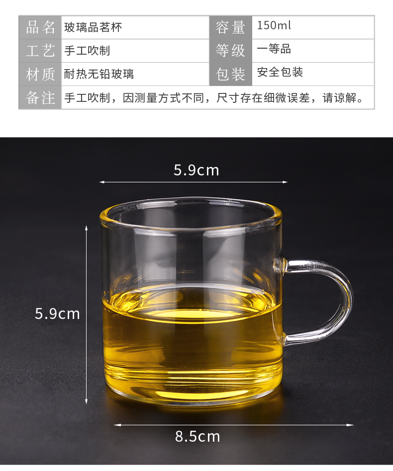 加厚耐熱玻璃帶把杯品茗杯子小茶杯