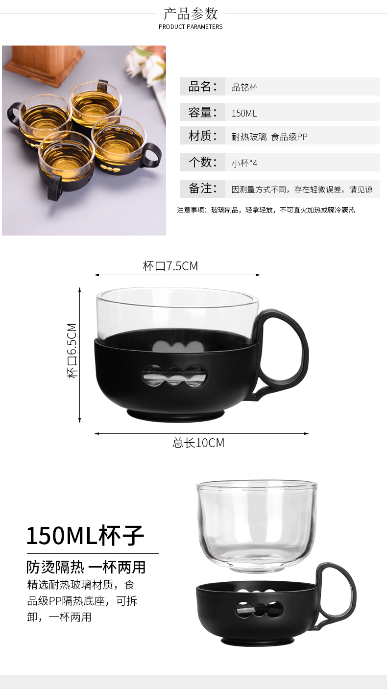 heisou 功夫小茶杯耐熱玻璃茶具杯子品茗杯150ML4只裝